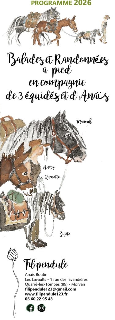 Où l’on découvre les chemins du Morvan en compagnie d’un âne, d’un cheval et d’un poney qui porteront nos bagages. Préparation des animaux, marche au rythme de la nature, apprentissage des plantes en chemin, ...
