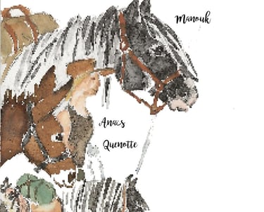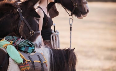 Manouk, Quenotte et Zigoto font partie de mon quotidien. Grâce à eux j'ai de l'engrais pour mes fleurs mais pas seulement ! Ils m'aident dans mes créations et mes activités quotidiennes. Quenotte, l'ânesse aide à la confection de tapis feutrés, Manouk la jument, tire des branchages pour la vannerie sauvage au jardin, Zigoto, le poney, est en apprentissage pour tracter une petite brouette "qui sert à tout". Ils font tous trois partie de mes voyages et randonnées de petites et courtes durées.