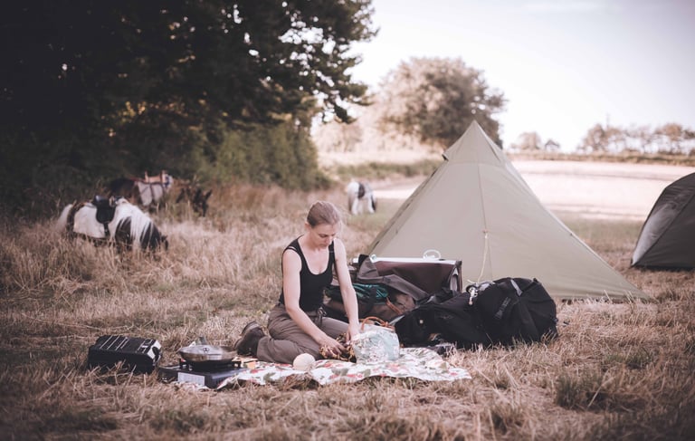 Monter/démonter son campement, cuisiner de bons produits locaux et des plantes sauvages, se laver/doucher en extérieur, ...