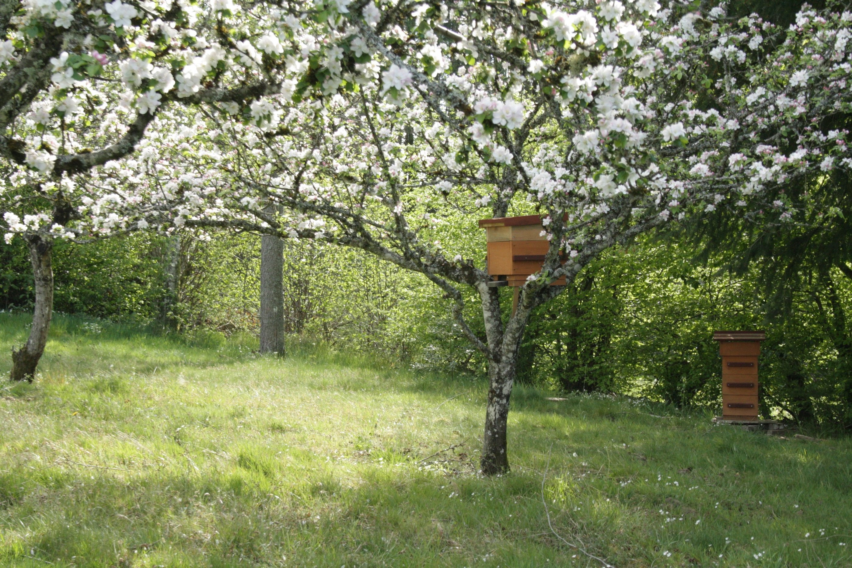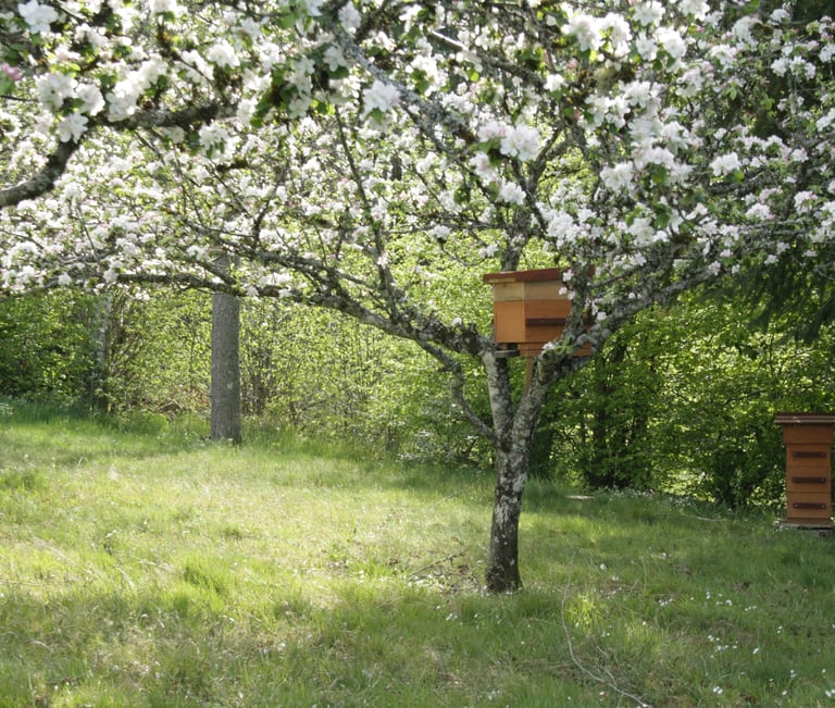 J'ai la chance d'avoir une trentaine de fruitiers sur mon jardin qui étaient là avant mon arrivée. Ils ne produisent pas tous les ans mais sont un vrai régal pour tous. Je m'amuse à confectionner quand j'en ai l'occasion des structures vannières dans le jardin, je réalise mes semis et produis des plantes tinctoriales en vue de créer de belles couleurs végétales sur la laine, le papier, le tissu. J'accueille quelques abeilles dans des ruches warré, ces ruches ne sont pas faites pour récolter le miel, du moins elles sont faites pour que les abeilles produisent suffisamment de miel pour elles-mêmes déjà puis s'il y en a suffisamment, je m'autoriserais à en récolter un jour pour déguster cet or au jardin !