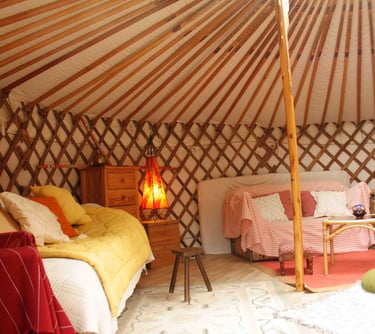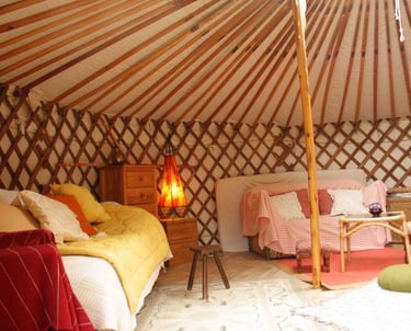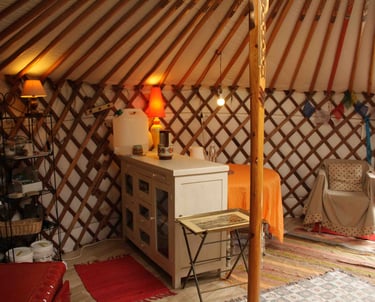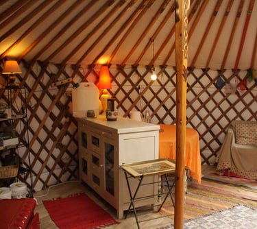 Un lieu si apaisant au fond et en haut du jardin... dans lequel j'ai plaisir à m'y retrouver chaque jour. Elle est située au milieu du verger. C'est une yourte mongole, sa toile d'extérieure a été changée pour être mieux protégée du climat annuel morvandiau.