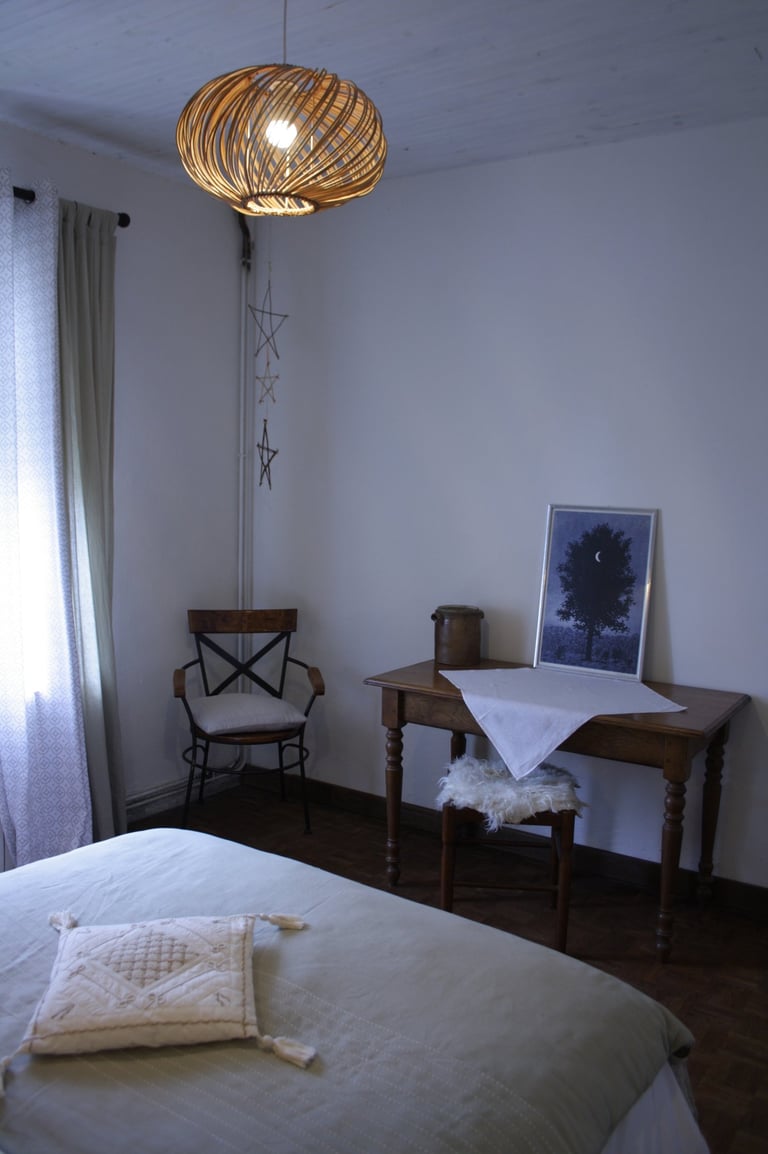 En cours de rénovation avec des matériaux naturels ... Ouverture prévue en 2024 ! Je le rénove principalement toute seule mais aussi avec l'aide incontournable de mes amis pour de gros chantiers de démolition, d'isolation notamment, ou avec l'aide indispensable de mon père et Bernard pour l'électricité entre autre, Martin pour ses conseils d'enduits à la chaux, le ponçage, du sol, les encadrements de fenêtres, ... Ce gîte sera situé sur tout l'étage de ma maison et avec une entrée indépendante.